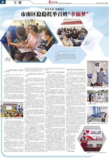 2022年,市南区坚持做强“喃喃解忧”救助帮扶品牌,将困难群体供养标准提高10%,累计发放各类救助帮扶资金5500余万元,为约600户特殊困难老年人家庭,增配价值1000元的适老化设施。过去10年,市南区每年更是将超过70%的财政收入投向民生领域,居民人均可支配收入达6.95万元、年均增长6.8%……鲜活的数据标注的是市南区各项民生事业的加快发展,折射的是人民群众获得感、幸福感、安全感的不断增强,见证的是民生为本的价值取向。