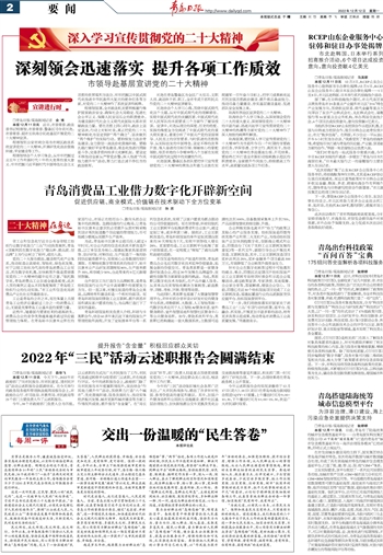| 青岛日报社(集团)数字报纸(包括《青岛日报》、《青岛早报》、《青岛晚报》、《老年生活报》)的一切内容(包括但不限于文字、图片、PDF、图表、标志、标识、商标、版面设计、专栏目录与名称、内容分类标准以及为读者提供的任何信息)仅供青岛日报社(集团)读者阅读、学习研究使用,未经青岛日报社(集团)及相关权利人书面授权,任何单位及个人不得将青岛日报社(集团)数字报纸(包括《青岛日报》、《青岛早报》、《青岛晚报》、《老年生活报》)所登载、发布的内容用于商业性目的,包括但不限于转载、复制、发行、制作光盘、数据库、触摸展示等行为方式,或将之在非本站所属的服务器上作镜像。否则,青岛日报社(集团)将采取包括但不限于网上公示、向有关部门举报、诉讼等一切合法手段,追究侵权者的法律责任。 |