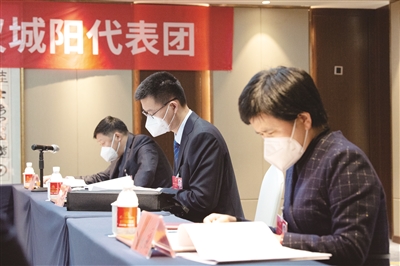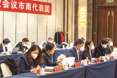 出席市十七届人大二次会议的代表们认真审议政府工作报告