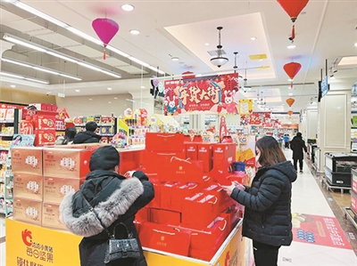 年货消费红红火火。挂满灯笼的年货节、年货大街洋溢着新春的喜气,各大商超纷纷推出年货促销活动。盒马鲜生吸引客流16万人,同比增长15.8%,带动消费超1000万元,同期增长近三成。利群金鼎购物广场每日销售额比节前增长超300%,客流量比节前增长230%。万达西海岸广场每日销售额比节前增长超900%,客流量比节前增长700%。