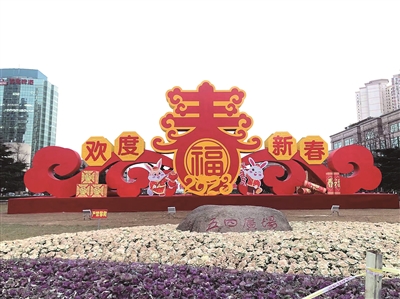 春节临近,年味渐浓,由市贸促会承办的2023年春节大型主题景观造型“迎春送福”在五四广场精彩亮相,该景观展示将持续至2月6日,为岛城营造喜庆祥和的节日氛围。