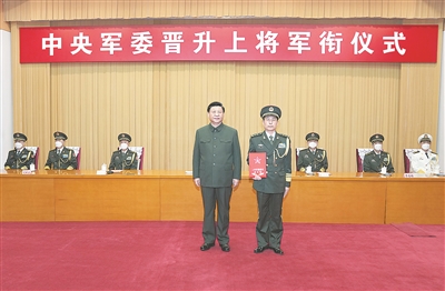 中央军委委员李尚福、刘振立、苗华、张升民,军委机关各部门、军队驻京有关单位主要负责同志等参加晋衔仪式。