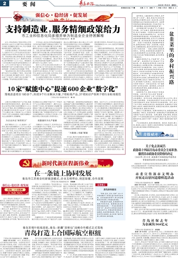 以数字技术赋能传统产业升级,构建数字化转型普惠服务体系。截至目前,首批10家青岛市数字化转型赋能中心已以“挂号义诊”模式,累计诊断赋能企业600余家,落地数字化改造项目180余个,形成9个行业解决方案、7项标准产品、37项知识产权和7项行业标准规范,在数字化赋能中为企业提质降本、纾困解难。