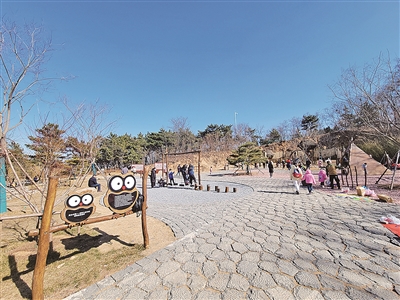 徐山文化公园是青岛西海岸新区打造的第一处“文化型”山头公园。而在整治前,这个“公园”还到处分布着林地、草地、果园、耕地以及部分设施功能用地,只是一个普通的山头,杂乱无序。在整治建设过程中,以“拆实墙、还绿景、通环路、便市民”为原则,按照“一心、一环、三区、十点”的结构进行改造提升,依托山林基底,保护复原历史遗迹,锚固齐长城、徐福石屋等徐山文化符号,针对齐长城遗址徐山段进行保护利用。“除本体保护外,还完善了标识、道路、管线、亮化等内容,并设置有齐长城文化墙、徐山广场、故垒漫道、郊野乐园、台地广场、休憩平台、齐桓公雕塑等景观节点。”青岛开发区投资建设集团徐山公园整治提升项目负责人王仁杰介绍,同时融汇绿色空间,完善徐山的山、水、林、路等体系建设。