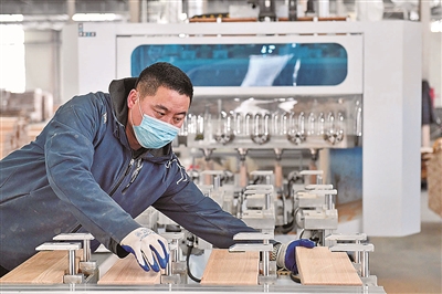 位于胶州的源氏木语智能家居产业园内,工艺数控加工中心的五轴数控机床有节奏的运转着,以超出传统工艺20多倍的效率,精准加工榫卯组件,成批的家具正源源不断运往海内外市场。