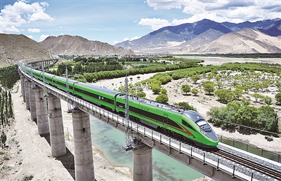 复兴号列车行驶在西藏山南境内(2022年6月22日摄)。 新华社照片