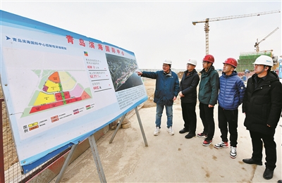 与此同时,在位于湖岛街道瑞海北路1号的人工智能产业集聚区项目现场,300名建设者正在奋力抢赶工期。该项目作为青岛国际邮轮母港启动区内的重大项目,占地面积约296亩,规划建筑面积约31万平方米,规划建设轨道交通人工智能大厦、产业孵化中心、人工智能企业总部、水上运动中心、高端政务商务酒店等设施。眼下,3栋总部大楼即将封顶。
