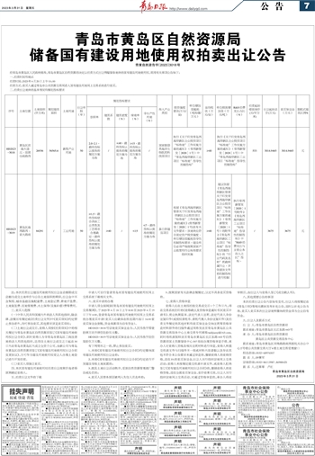 本次拍卖出让公告内容如有变化,出让人将按规定在《青岛日报》等相关媒体发布补充公告,届时以补充公告为准。竞买人竞买本次出让宗地所缴纳的资金须为企业自有资金。
