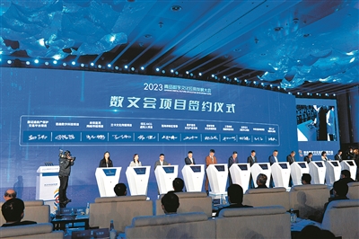 以蓝色为主色调的会场内,600多个座位座无虚席。国内数字文化产业领域知名专家学者、企业家齐聚一堂,畅谈思路理念,分享实践成果,以数字化赋能文化产业高质量发展。