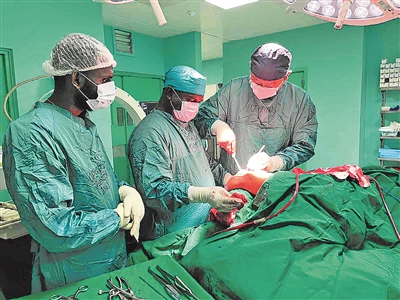 虽然和国内相比,两位医生经手的手术量并不大,但相对于当地的人口基数而言,这一手术量和门诊量已经很可观。当地医疗条件有限,设备陈旧,很多手术因无合适的医疗设备和手术器械难以正常开展。许丰强经常需要为当地心跳缓慢的患者做永久性起搏器植入术,由于当地没有专门的设备,只能依靠简单的骨科透视设备完成,这对许丰强来说是巨大的挑战。在这种艰苦条件下,他依然为40余例危重症患者成功完成了起搏器手术,让这些患者重获新生,且无任何并发症。