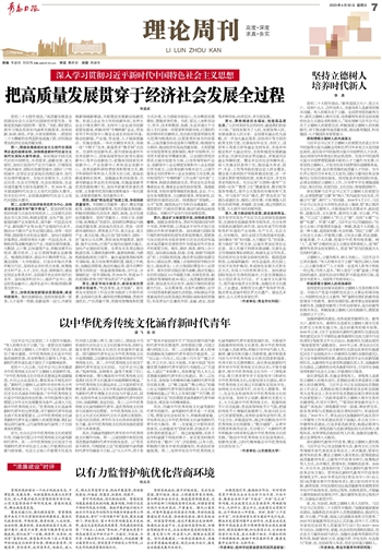 其次,明确涵育新时代青年的中华优秀传统文化精华内核。第一,以家国情怀和经世致用思想涵育新时代青年的使命追求。以“常思奋不顾身,而殉国家之急”的爱国情怀涵养新时代青年明确奋斗目标,以“大人不华,君子务实”“修身齐家治国平天下”的治世情怀提升新时代青年的思想境界,培育爱国之情、兴国之魂与报国之志。第二,以崇德尚善、重人轻神的道德标准为新时代青年提供价值滋养。以“勿以恶小而为之,勿以善小而不为”“德之不修,学之不讲,闻义不能徙,不善不能改”的尚德思想为新时代青年提供行为规范;以“天道远,人道迩”“未能事人,焉能事鬼”的人本主义思想激发新时代青年的主体意识。第三,以生生不息、坚韧奋斗的精神品格为新时代青年提供实践支撑。以“精卫填海”“愚公移山”的雄心壮志为新时代青年提供接续奋斗、矢志不渝的精神底蕴;以“男儿立身须自强”“天行健,君子以自强不息”的自我要求涵养新时代青年踔厉奋发、艰苦奋斗的精神源泉。