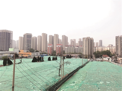 站在河西实业总公司楼顶放眼望去,河西剩余片原有的“趴趴屋”多数已经被拆,铺上了绿色防尘网,一片废墟和四周林立的高楼形成鲜明对比。伴着机器的轰鸣声,这一区域将迎来新生。