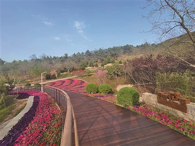 依托山体建设2段合计390米架空栈道,为游客提供别样观景体验,实现“人在山林中,身在公园里”的美好体验;结合绿道沿线地形地貌,打造“寻山探幽,一线十景”的迷人风光;新建驿站、公厕11个,打造“百米登山舒适圈”;创新引进智慧元素,安装122盏路灯,打造“最美夜景”,为游客提供全天候沉浸式游览体验;沿栈道两侧进行花卉布局,并引进冰雪皇后等冷凉花卉,实现“四季有花,四季常绿”,展现四季不同景色的“最美花道”,市南区通过自然景观和人文景观相容,积极打造浮山最美绿道。
