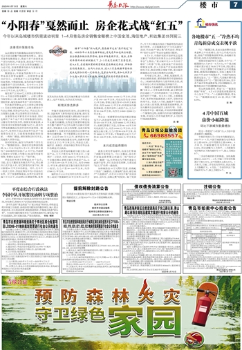 展望5月岛城楼市,本报楼市观察员李鹏飞表示,4月青岛楼市回落,最主要的原因还是前三个月的积累得到了充分释放,市场开始归于平静。而且在4月份,上新楼盘不多,很多热销盘逐渐进入尾声,导致市场热情不足。但进入5月份,随着多个改善大盘入市进入旺销期,刚性需求逐渐释放,市场大概率还会出现成交上涨的行情。目前,市场复苏不会一蹴而就,市场底部修复需要一个缓慢的过程,短期内的市场仍需要政策支撑,市场信心仍有待政策呵护,5月份的行情或值得期待。