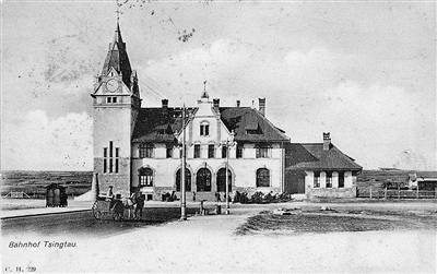 1900年春天之后,青岛火车站的主体建筑,作为青岛新城无与伦比的崛起象征,逐渐出现在胶州湾的东岸。从火车站工地的施工脚手架上向东北方向眺望,新城市的营建现场清晰可见。1901年4月,从栈桥西边始发的蒸汽机车通至胶州。到当年秋后寒冷日近的时候,青岛火车站竣工……