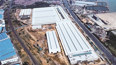 最后完成围护板安装的,是项目二期最大的单体厂房——联合厂房车间。记者看到,原先的立柱已经被白色围护板完全覆盖,硕大的厂房已经现出完整模样。空中俯瞰,整个项目一期、二期已经连绵成片,装配车间、精饰车间、发运车间、联合厂房车间……一座现代化智慧智造创新园区已初具规模。据悉, 联合厂房车间整合了涂装、焊接等基础结构件工艺加工制作,装配车间与涂装车间通过钢连廊及地下通道实现生产工艺无缝衔接。