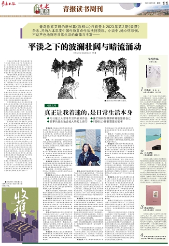 青岛作家艾玛的新长篇《观相山》日前登上2023年第2期《收获》杂志,并纳入本年度中国作协重点作品扶持项目。小说中,她心怀悲悯,不动声色地探寻日常生活的幽微与丰富——~~~