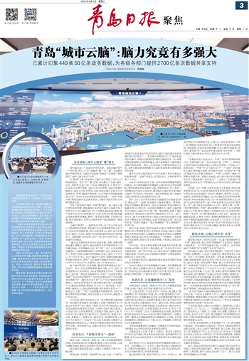 截至目前,青岛城市云脑已经累计归集449类50亿条政务数据,为各级各部门提供2700亿条次数据共享支持,汇聚10个区(市)、17个市级部门共23万余路视频监控资源,形成300多张数据图层,融汇全市476个场景……一个更加耳聪目明、更善解人意、反应更加迅速的青岛正一步步向我们走来。