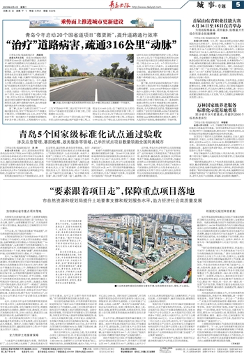 其中,新开工的5个项目包括:位于平度市西北部的G206威汕线平度段中修工程,工程全长13.653公里;位于城阳区东北部的S211店沙路G228至纸坊桥段中修工程,工程全长5.973公里;位于崂山区北部的S212王南线囤山至南北岭段中修工程,工程全长5.405公里;位于崂山区北部的S102济青线S209至Z004交界段预防性养护工程,工程全长8.407公里;位于西海岸新区南部的G228丹东线西海岸新区部分路段预防性养护工程,工程全长13.46公里。5个项目共计约47公里,计划年内完工并通车。这5条国省道干线均为青岛重要通道,承担着重要的基础交通功能。通过预防性养护及中修工程,将大大改善路面技术状况,提高公路服务水平及整个路网通行能力,更好地推动沿线经济社会发展。