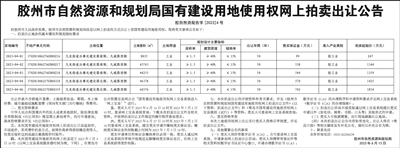 胶州市自然资源和规划局国有建设用地使用权网上拍卖出让公告