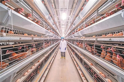 集团自主研发了全国最高的6列12层(1800平方米)的大跨度超高层集约智能化鸡舍,该鸡舍单栋存栏15万只,舍内温度、湿度、通风、有害气体全部采用环境智能监测与控制,给料给水、鸡蛋收集、鸡粪清理全部实现了自动化控制。鸡蛋经过45℃至50℃高压水洗、冷风烘干、紫外线蛋壳杀菌、声呐蛋品检测、5000瓦光谱血蛋侦测、电眼重量分级6道关口方可上市。与传统4层鸡舍相比,每平方米占地面积饲养数量由30只增加到了83只,提高了260%,基建设备投资降低30%,用工成本降低30%,一人可以养鸡15万只鸡。目前,青岛田瑞集团蛋鸡存栏46万只,日产鸡蛋20吨。