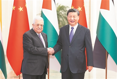 习近平指出,中巴两国是相互信任、彼此支持的好朋友、好伙伴。中国是最早承认巴勒斯坦解放组织和巴勒斯坦国的国家之一,始终坚定支持巴勒斯坦人民恢复民族合法权利的正义事业,推动巴勒斯坦问题早日得到全面、公正、持久解决。中方支持巴勒斯坦成为联合国正式会员国,将继续在多边场合为巴方仗义执言、主持公道,愿继续向巴方提供力所能及的援助,帮助巴方缓解人道主义困难、开展重建。中方愿同巴方以建立战略伙伴关系为契机,继续在彼此核心关切问题上坚定相互支持,全面推进各领域友好合作,深化共建“一带一路”合作,加快中巴自由贸易协定谈判,加强治国理政经验交流,赓续传统友好。