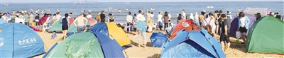 凉爽的海风下品一杯咖啡放松心情,细软的沙滩上“开满”了露营帐篷,湛蓝的海面上不仅可以洗海澡,还可以体验桨板、冲浪……已经于6月1日开门迎客的第一海水浴场,描绘出了青岛夏日海滩时尚、浪漫与动感的“新模样”。