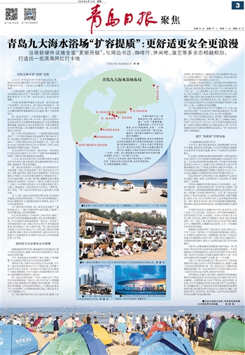 作为海岸线上的璀璨明珠,海水浴场既是青岛这座滨海城市得天独厚的资源禀赋,也是展现城市形象的靓丽名片。记者从市城市管理局获悉,今年,青岛组织开展了海水浴场整治提升专项行动,根据九大海水浴场的不同特色采取“一浴场一方案”,深入推进海水浴场软硬件和内外部环境品质提升,打造了一批“网红”打卡地。