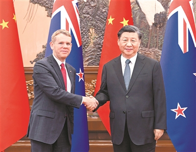 习近平指出,总理先生就任后多次表示重视中新关系,将继续加强同中国合作,我对此十分赞赏。我一直高度重视中国同新西兰的关系。2014年,我访问了新西兰,双方宣布建立全面战略伙伴关系。近10年来,中新关系持续健康稳定发展,给两国人民带来实实在在的好处,也有利于地区和平稳定和发展繁荣。中国一直把新西兰当作朋友和伙伴,愿同新方共同努力,开启两国关系新的50年,推动中新全面战略伙伴关系行稳致远。