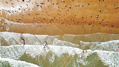 “青岛‘20度+’的天气真的好舒服,真想住在海边。”在石老人海水浴场,来自湖南的游客李女士说,这趟出游本来是遛娃,没想到大人先不想走了。7月1日,岛城各大海水浴场全部开放,外地游客和本地市民齐赴浴场,海滨一线好不热闹。在石老人海水浴场,不少自驾游客直接把帐篷带来了,小游客们提着水桶玩沙子,大人们坐在身边陪伴,放眼望去,亲子游客占到很大一部分。年龄大一些的孩子们,则在父母的陪同下戏水,一声声尖叫和大笑中定格着童年的快乐。