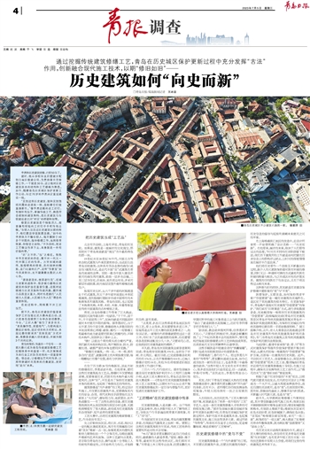 其实,在时下青岛历史城区火热的历史建筑修缮场景中,像李勇和贾东鹏这样“师与徒”的身影,还有不少。老师傅们为仍能发挥余热而振奋,年轻人则为拥有一技之长而感到踏实。