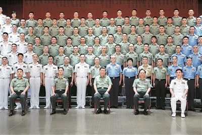 下午3时15分许,习近平来到东部战区机关,在热烈的掌声中,亲切接见东部战区官兵代表,同大家合影留念。