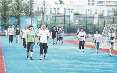 当越来越多的校园向市民打开大门,到学校运动场上健身就逐渐成为人们的一种生活习惯。