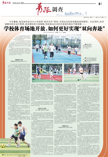 在市南区,体育场地开放已逐步成为学校的一项常态化工作。市南区学校占地面积普遍较小,教学区与体育场地多紧密相连。该区投入上百万元对学校场地进行了改造,如增置单独通道、加装物理隔离、设置独立卫生间等。今年暑假,该区特意将学校场地开放时间调整为每天6:00-20:00。即便是暑假有托管任务的学校,也尽量保证居民可以入校锻炼,将开放时间定为6:00-8:00、18:00-20:00。