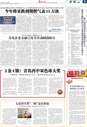 青岛日报要闻·专题05今年将更换到期燃气表15万块 2023-07-14 2 2023年07月14日 星期五