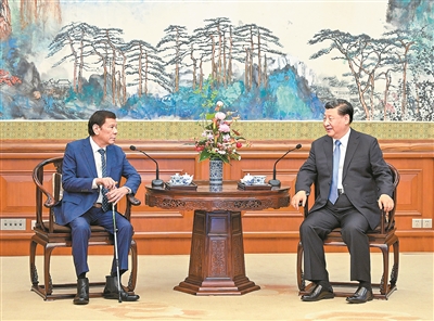 习近平指出,你担任菲律宾总统期间,本着对人民负责、对历史负责的态度,毅然作出改善对华关系的战略选择,中菲关系得以重回正轨并蓬勃发展,为两国友好交往作出重要贡献。中菲同为亚洲发展中国家,两国发展根植于睦邻友好的周边环境,根植于合作共赢的亚洲大家庭。中国奉行亲诚惠容的周边外交理念,一向坚持与邻为善、以邻为伴。中方始终重视中菲关系,愿同菲方一道,推动中菲关系行稳致远。希望你继续为两国友好合作发挥重要作用。
