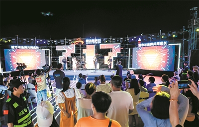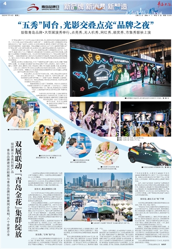 当“青岛品牌日”五个大字和LOGO在夜空闪现,浮山湾畔的市民和游客发出阵阵惊呼。7月17日晚,2023年青岛品牌日“品牌之夜”——致敬青岛品牌·大型展演秀在青岛国际会议中心门前广场举行,点亮秀、无人机秀、网红秀、颁奖秀、市集秀“五秀”联袂上演,给市民和游客带来一场视听盛宴。青岛品牌魔方点亮仪式、30个少年儿童唱响“智慧生活”和“青岛之歌”,以及卡萨帝品牌之夜、500架无人机上演的青岛品牌夜空秀,均成为亮点。