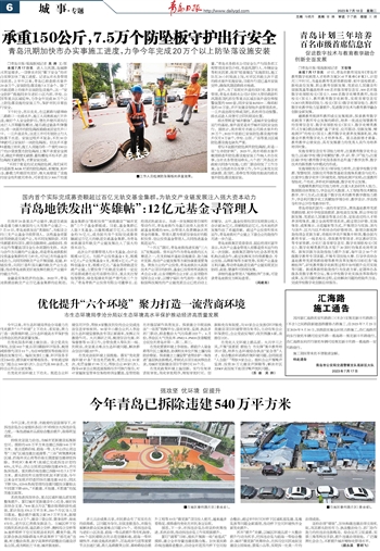 本报7月17日讯 进入主汛期,岛城降水明显增多,一项事关市民“脚下安全”的市办实事加快了施工进度。记者从市水务管理局获悉,上半年以来,青岛已排查排水窨井20余万个,安装防坠落设施7.5万余个。除了市政道路上的窨井加装防坠设施外,这一“安全防护”措施同步向老旧小区内部、学校、公园等重点区域延伸,力争全年完成20万个以上防坠落设施的安装工作,保护市民日常出行安全。