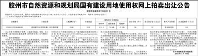 胶州市自然资源和规划局国有建设用地使用权网上拍卖出让公告