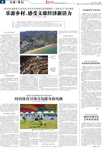 乐游乡村,见证青岛文旅经济新活力。山脚下茶园里的研学,海岸边环岛公路的晚风、湖畔的啤酒美食节……乡村旅游不仅丰富了市民游客的诗意日常,更打通了青岛“两山”转化的新路径。携程数据显示,截至7月20日,2023暑期最钟爱去乡村“溜娃”的父母分别来自北京、广州、成都、苏州、天津、宁波、西安、青岛、无锡、郑州。青岛乡村的吸引力,得到直观显现。