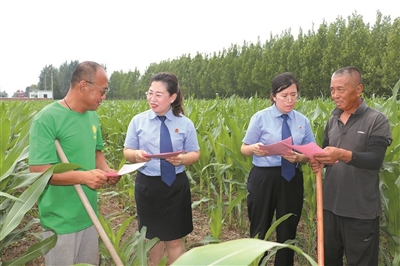 | ■平度市检察院第一检察部结合去年以来办理的粮食收购诈骗案件,在利用新媒体宣传防范粮食诈骗知识的基础上,走进田庄镇幸福庄田间地头、农民家里、村委大院,与农民朋友谈收成、拉家常,通过发放一封信、“大喇叭”广播等方式,将相关知识从“线上”送到了“线下”,受到群众欢迎。 |