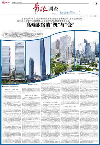 “以往,青岛高端旅游饭店大多集中在沿海主城区,目前,市区北部、西部和东部都逐渐开始形成高端酒店集群。”一位业内人士告诉记者,“青岛高端旅宿市场的品牌化、集群化、个性化发展趋势明显,这种规模效应为区域经济发展提供着新动力。然而,如何走得更好,依然是摆在青岛旅游业高质量发展面前的一道必答题。”