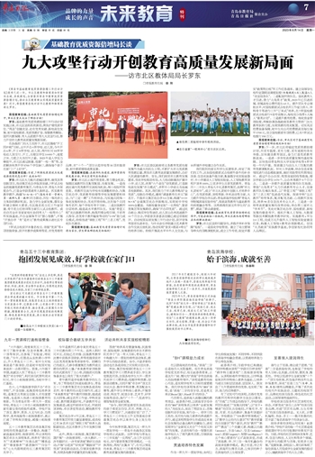《青岛市基础教育优质资源倍增三年行动计划》发布已近一年。市北区教育和体育局如何面向全域、系统谋划,全面落实青岛市教育优质资源倍增计划,推动全区教育事业实现高质量新发展?近日,青报教育在线对话市北教育和体育局局长罗东。
