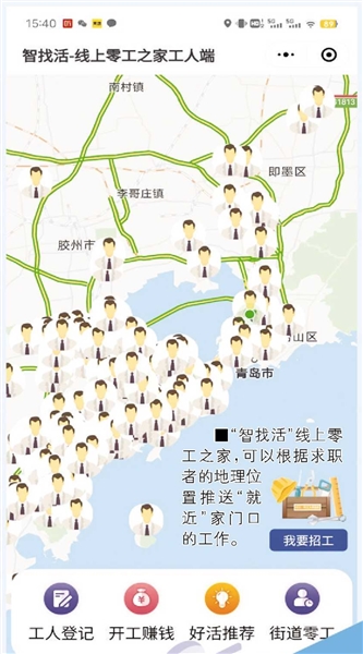 “经过前期对部分零工人群的摸底调研,发现他们对就近求职的诉求比较大。”西海岸新区人力资源和社会保障局相关负责人表示,“智找活”平台主打“家门口的就业”,让社会闲散群体、困难零工更便捷地就业。