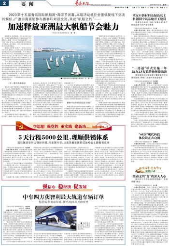 今年,紧扣“传承奥运、扬帆青岛,活力海洋之都、精彩宜人之城”主题,帆船周·海洋节抓住全面恢复线下交流的契机,从赛事活动到会议交流实现全面升级。“青岛国际帆船周·海洋节是青岛连续15年培育打造的知名帆船品牌活动,在帆船赛事、海洋文化、群众普及、产业融合等方面持续深耕、不断提升品质,成为青岛又一张靓丽的城市名片,也成为全国帆船赛事活动的典范。”中国帆船帆板运动协会副主席傅丹青说。