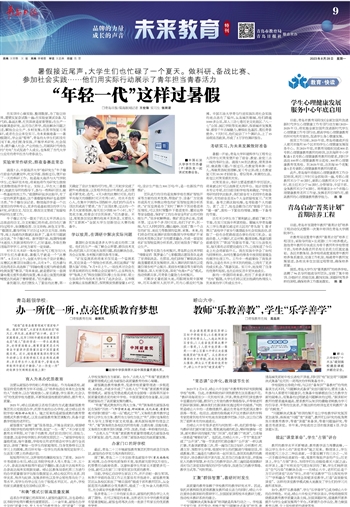 在实训中心做实验、整理数据,为了验证结果,需要反复尝试数十遍;在实验室调试设备、写代码,备战比赛,忙到深夜是家常便饭;在生产一线做调查研究,运用自己所学,找出解决问题之道,赋能企业生产、乡村发展;在图书馆复习考研,或者在企业单位实习,为未来做准备……暑假期间,学业虽“暂停”,青岛的大学生们却没有闲下来,他们躬身实践,开展学术研究、社会服务,提升融入社会、产业的能力,用颇具时代特色的“充电”方式促进个人成长,也体现了当代大学生应有的青年担当与青春活力。