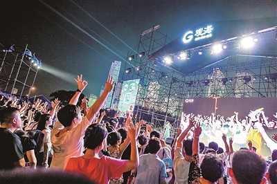 音乐节现场,人潮涌动,以绚丽的浮山湾灯光秀为天然幕布,以海风吹动浪花为自然配乐,融合声光电的激情演唱,观海为粉丝们送上一场特殊的庆生盛宴。