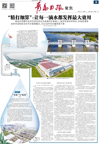 ~~~青岛在保障市民用水和经济社会发展供水基础上,逐步形成经济制约、科技挖潜等多种手段相结合的节水管理模式,万元GDP用水量持续下降