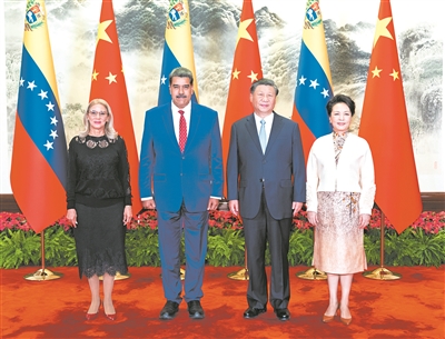 习近平夫人彭丽媛和马杜罗夫人弗洛雷斯陪同参加欢迎仪式。当晚,习近平和彭丽媛在人民大会堂金色大厅为马杜罗和弗洛雷斯举行欢迎宴会。