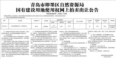 青岛市即墨区自然资源局国有建设用地使用权网上拍卖出让公告